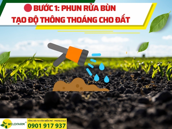 ✅ Bước 1: Phun rửa bùn – Tạo độ thông thoáng cho đất