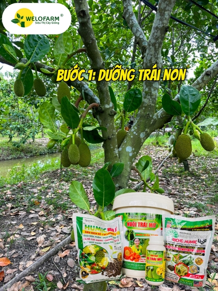 • 1 túi 5kg Xô Nuôi Trái Mít + 1 gói Tricho Humic + 1 gói Humic Hoa Kỳ + 2.500L nước -> Tưới ướt đều tán gốc, từ 5-10L/gốc, tùy gốc lớn, nhỏ.