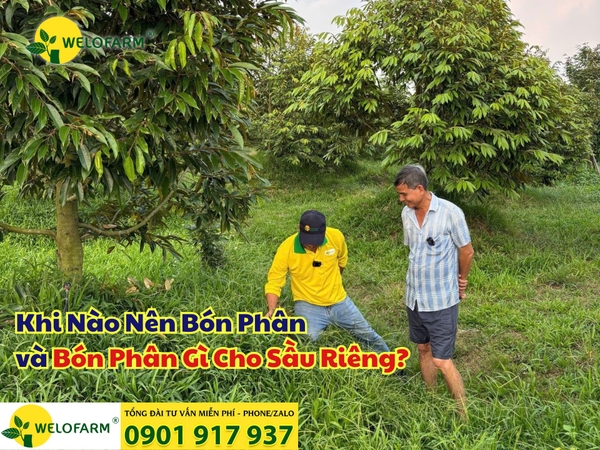 Trong quá trình chăm sóc sầu riêng, nhiều bà con thường đặt câu hỏi: “Khi nào nên bón phân cho sầu riêng và bón phân gì giúp cây phát triển tốt?” 1. Nên bón phân gì cho sầu riêng Welofarm x...