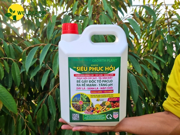 5L Siêu Phục Hồi + 2kg Humic Hoa Kỳ + 2kg Micro Tricho + 2.000L nước. Tưới ướt đều quanh gốc 10 - 15 ngày/lần