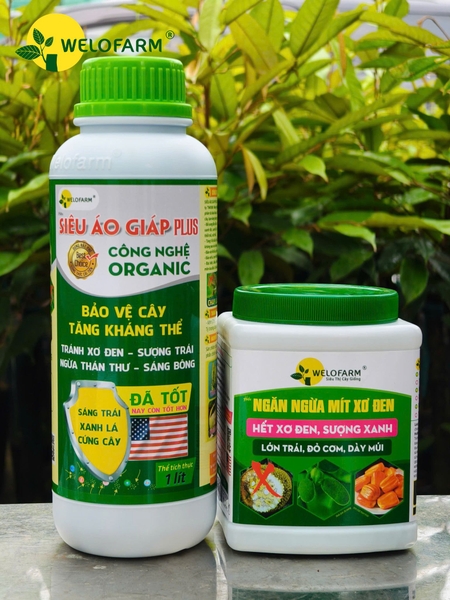 0.5kg Chống Mít Xơ Đen + 1L Siêu Áo Giáp Plus + 400L nước, phun trực tiếp lên bông và trái (không cần phun toàn tán).