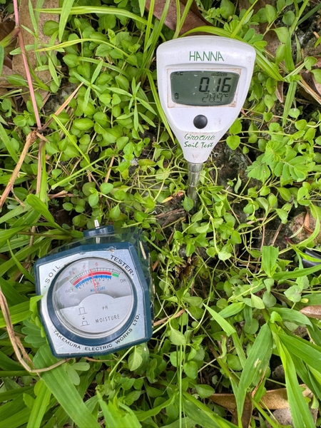 🌿 Hiện tại, lá non ra đồng loạt, bản lá to, dày và xanh hơn hẳn. Phần lá chân và lá nách trước đây nhỏ, yếu thì nay đã bung rõ, cho thấy sức cây đã trở lại. Kiểm tra đất cho thấy dinh dưỡng trong vườn rất tốt, chỉ số đạt khoảng 0.69–0.70, vượt ngưỡng đủ. Vấn đề chính nằm ở pH đất. Một số vị trí trong vườn có pH chỉ khoảng 5.0, thấp hơn mức lý tưởng, khiến cây hấp thu dinh dưỡng kém, đặc biệt là kali, dẫn đến cháy lá và vàng lá.