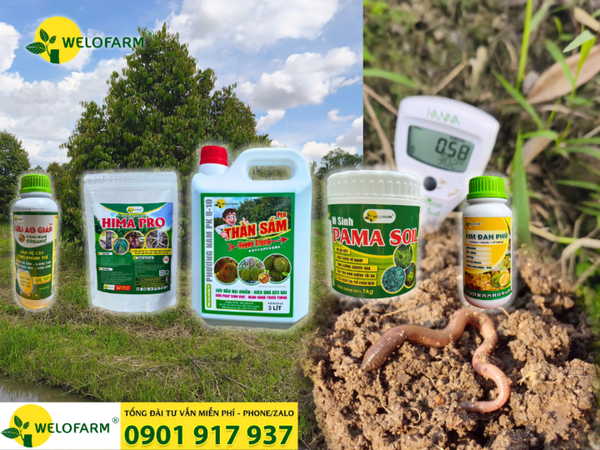 👉 Sau đó, bà con nên tưới Thần Sấm để diệt tuyến trùng, ngăn nấm khuẩn có hại và bảo vệ bộ rễ, 01-02 ngày sau, tiếp tục rải Hima Pro và Pama Soil – hai dòng vi sinh giúp phục hồi đất, tăng sức đề kháng cho rễ và kích thích hệ vi sinh vật đối kháng phát triển mạnh.