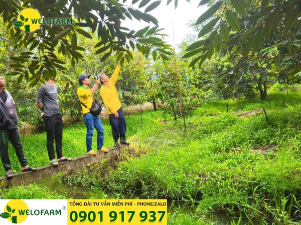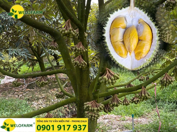 👉 Thông thường, cây sầu riêng bắt đầu có thể cho trái từ năm thứ 4 trở đi. Tuy nhiên, thời điểm này còn phụ thuộc vào tốc độ phát triển và sức khỏe của từng cây. Welofarm từng gặp nhiều vườn sầu riêng dù đã 4 tuổi nhưng cành còn non, thân còn đỏ và hệ nhánh chưa đủ lực, nên phải khuyến cáo bà con nên chờ thêm một năm nữa