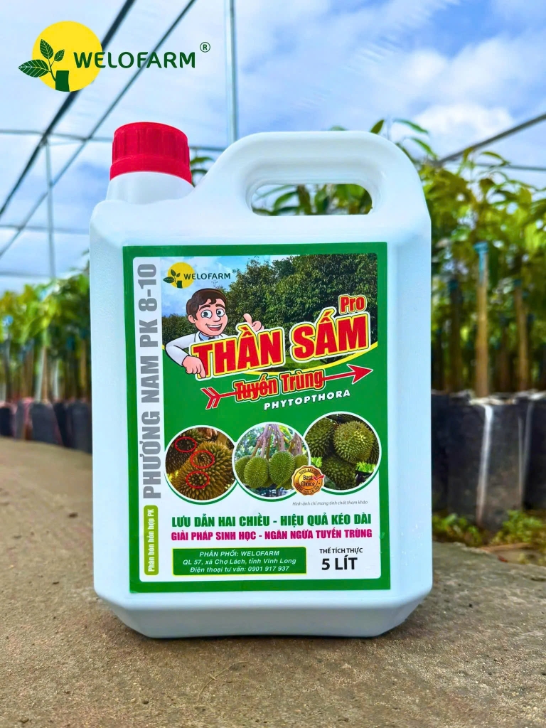 - Kiểm soát nấm bệnh, tuyến trùng, nứt thân xì mủ: pha 500ml Thần Sấm Diệt Tuyến Trùng Pro cho 200 lít nước.