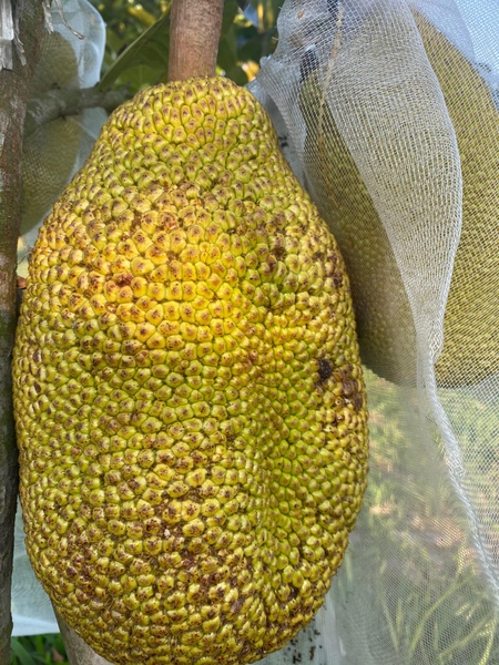 Ở giai đoạn này, nếu cây thiếu dưỡng chất hoặc không được can thiệp đúng cách, trái dễ bị lệch khung, mất cân đối, phân bố muối không đều. Đặc biệt, giống Mít Ruột Đỏ có đặc điểm tự nhiên là phần vai trên thường nhọn hoặc tóp – khiến tỷ lệ đạt mít nhất càng khó.