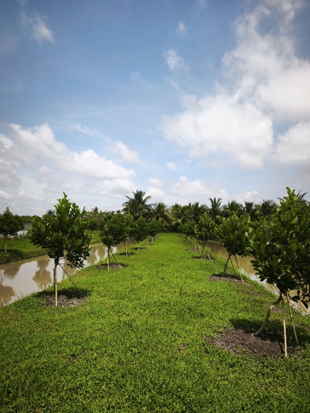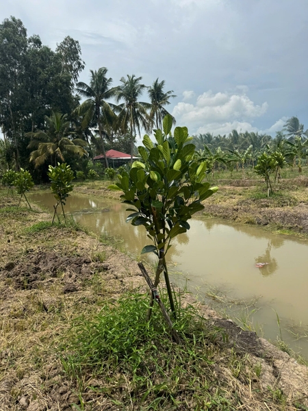 ✅ Bên cạnh cây giống, xử lý đất trong mùa nắng là yếu tố rất quan trọng, đặc biệt ở vùng đất phèn. Bà con cần rải vôi đều trên mặt liếp để hạ phèn, kết hợp tưới xả nước liên tục để rửa trôi độc chất, sau đó thay nguồn nước mới để cải thiện môi trường đất. Đồng thời, nên nâng pH cục bộ tại hố và mô trồng, rồi từ từ tưới lan rộng ra xung quanh để tạo điều kiện thuận lợi cho rễ phát triển.