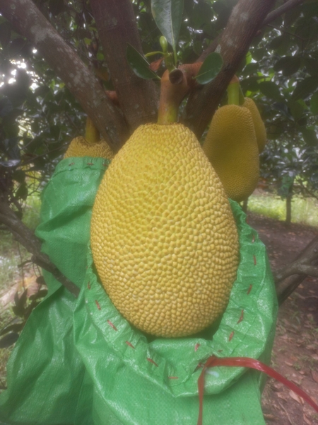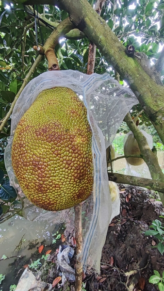 ✅ Để bảo vệ trái khỏi ánh nắng, bà con có thể dùng bao gạo, cắt đáy bao để dễ quan sát trái. Cách này giúp giảm thiểu tác động của nắng và các yếu tố bên ngoài khác, ngăn ngừa mít bị nám da do nắng